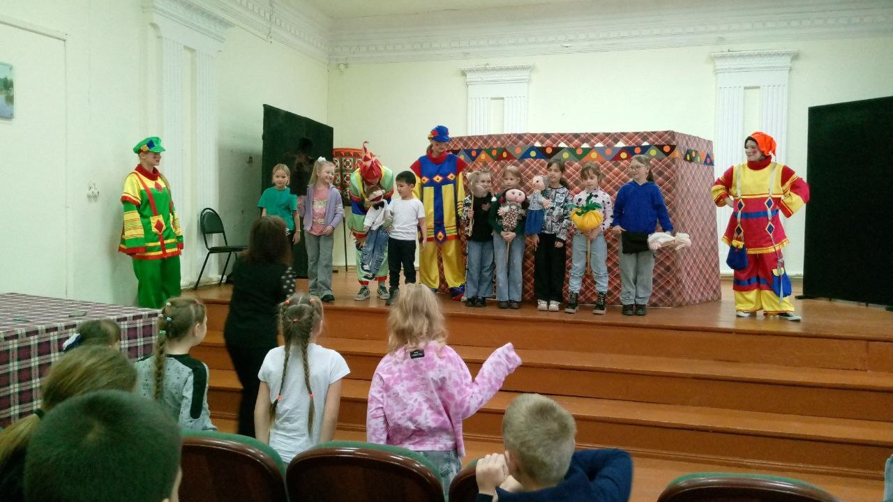 Для младших школьников театр «Петрушка» (руководитель Ольга Герасимова) выступил с интермедией «Петрушка на ярмарке». Кукольный театр «Кукляндия» подготовил сказку «Репка». Ольга Николаевна предложила школьникам попробовать себя в роли актеров, и ребята с удовольствием подключились.